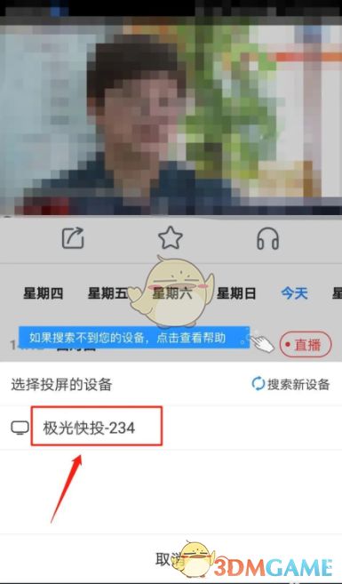 3、在系统搜索到的设备列表中,选择投屏的设备。