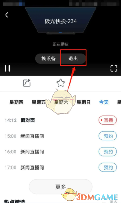 4、如需要结束投屏到电视,则点击播放页面中的退出按钮即可。
