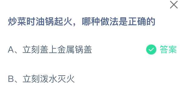 以上就是炒菜时油锅起火,哪种做法是正确的,支付宝蚂蚁庄园2025年10月17日答案最新,更多精彩内容,请点击关注0405手游网更新!