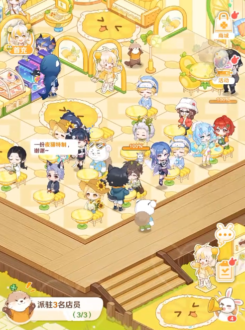 但是整体店铺的装饰是比较自由的,每个玩家都可以展现自己的创意,根据不同的风格自由搭配各类的家具,这些家具的类别样貌各不相同,可以在游戏里多去尝试几个摆放方式,只需要把收银台设置在门口,方便顾客点餐即可,内部可以随意设置,玩家在进店之后会选择自己喜欢的位置就餐,需要注意的是,想让店铺吸引更多的流量,装饰只是其中的一个部分,玩家还需要合理的安排营业时间,每个角色都有自己的疲劳值,一旦疲劳值过高之后就无法更好的服务顾客。