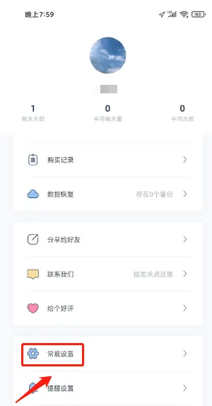 1、打开柠檬喝水app后,进入我的,点击(常规设置)按钮。