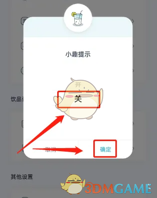 3、进入小趣提示,勾选关按钮,点击(确定)按钮。