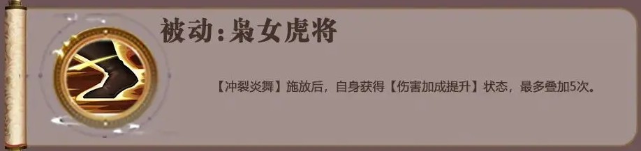 【冲裂炎舞】施放后,自身获得【伤害加成提升】状态,最多叠加5次。