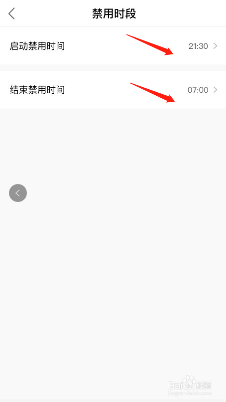 5、小编启用禁用时间为21:30,结束禁用时间为7:00