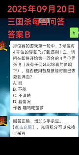 三国杀的每日问答是玩家获取额外奖励、深入了解游戏机制的重要途径。每天参与问答,不仅能积累游戏资源,还有助于提升对游戏的理解和策略运用能力。