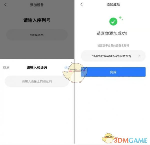 在APP首页点击“添加设备”,在扫描添加设备界面右上角点击“手动添加”输入设备序列号及验证码,即可成功添加设备并修改设备名称。