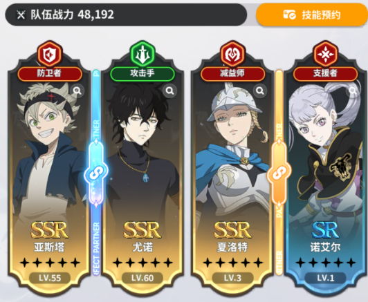查看《黑色四叶草魔法帝之道》配队攻略