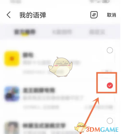 1、打开app对玩页,点击右上角“我的语弹”图标。