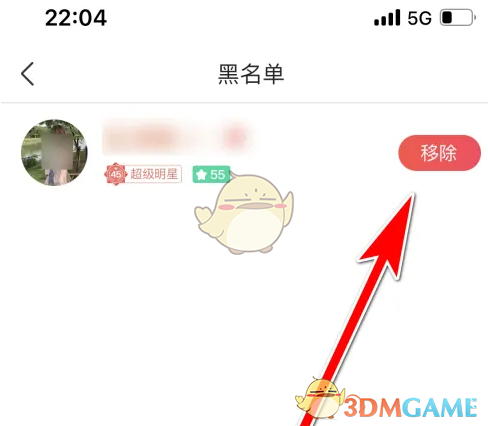 6、点击目标用户图标后方的【移除】选项,即可移除黑名单里的用户。
