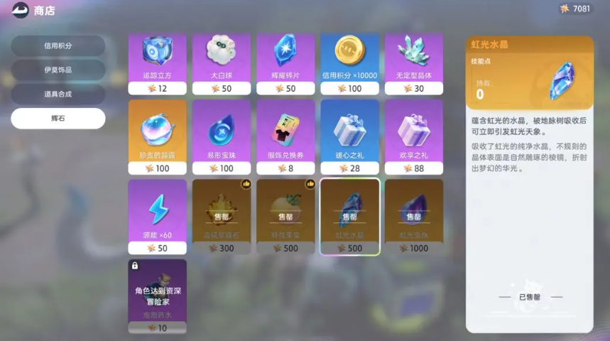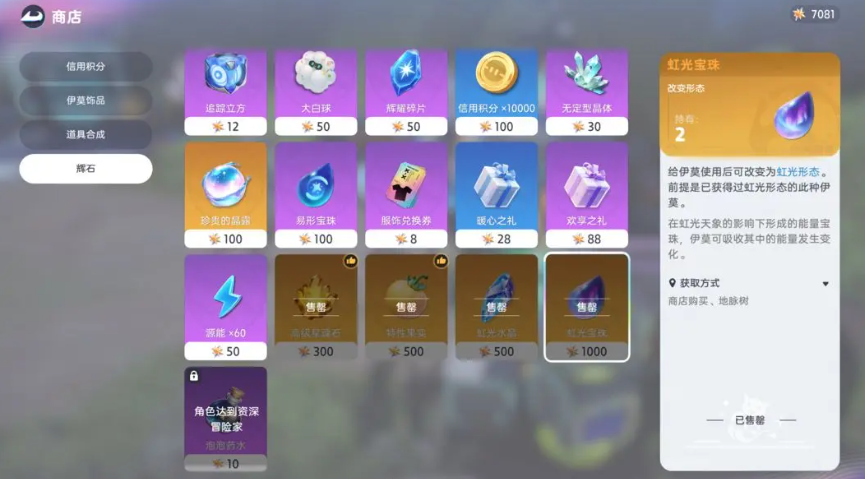玩家在前期系统也会赠送一些虹光水晶这个道具,获取的渠道目前来说也是比较多的,除了任务获取之外,后期大家也可以通过购买来获取,目前商城里面直接购买的价格还是比较贵的,所以大家有足够资源的情况下再去购买,其次一定要在区域上面找到更适合使用这个道具的区域,因为目前的宠物它们根据自己的自身特色,在生态环境上面是有自己喜好的,所以大家想要捕捉处于虹光状态,下面的宠物这里可以了解这一片区域它的宠物类型有哪一些,如果判断这里虹光区域的宠物类型不是大家想要的,那么就不要浪费道具。