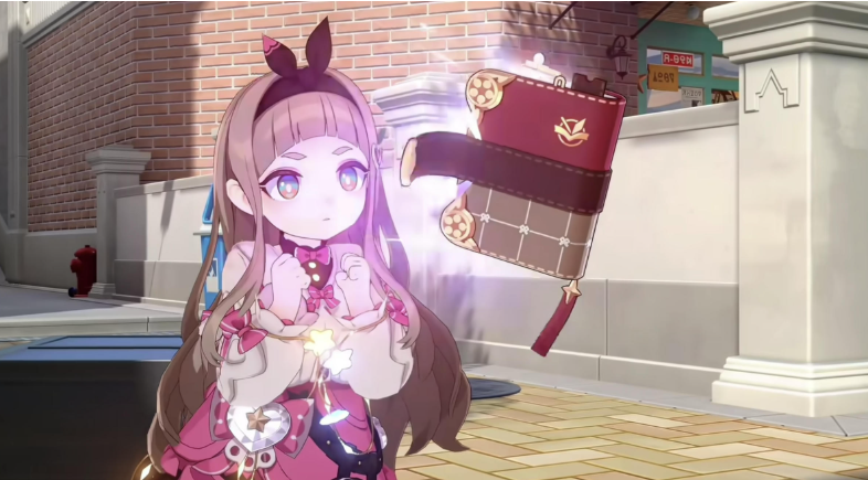 如果大家被美宝外观吸引的话,那么后期在实战上面也要用好这个角色,美宝目前的话,在游戏当中是具有一个亲和力很高属性的角色,她外观上面的黑色蝴蝶结也带来了更多的少女气息,在核心技能上面有一个闪亮派对的效果,这个效果是在战斗的一开始就可以自动触发的,所以说一个被动的能力在此时触发这个技能的话,美宝会投掷出来两枚骰子,这个骰子会决定我方目前团队获得的增益效果是什么。