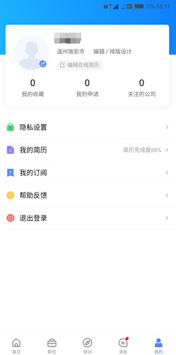 3、所以在这个APP中,我们并不能发布招聘的信息,只能投发自己的简历,找到对应公司的信息。
