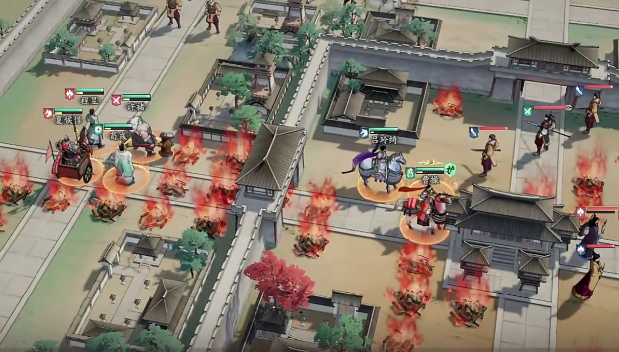 武将的搭配方面,玩家可以直接选用曹操、关羽、夏侯惇、吕玲绮,同时玩家在布局方面,需要保证每一个武将单位都是分散的,避免吃到太多的aoe攻击,同时,一定要让曹操站在安全的边缘位置。