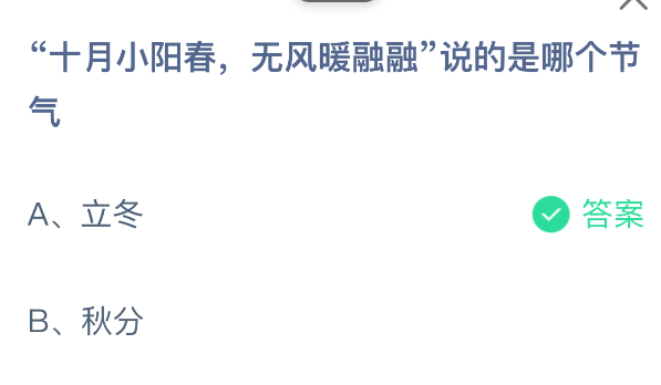 以上就是“十月小阳春,无风暖融融”说的是哪个节气,支付宝蚂蚁庄园2025年11月7日答案最新,更多精彩内容,请点击关注0405手游网更新!