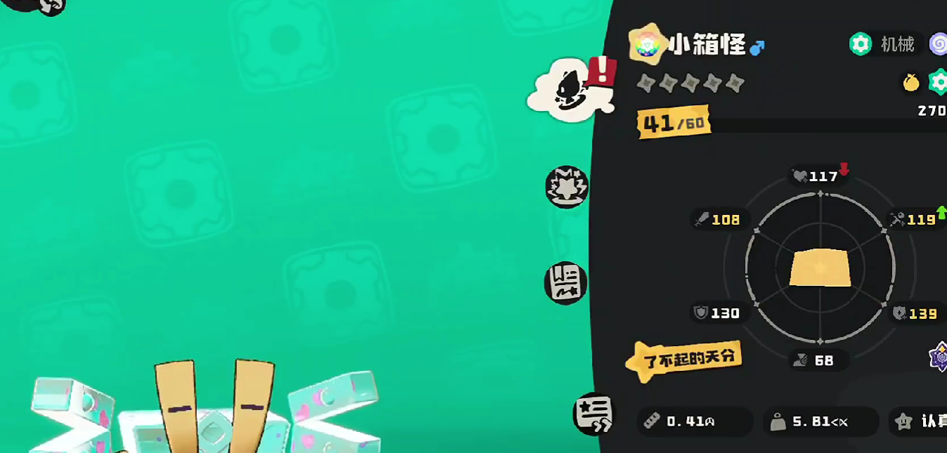 小箱怪在游戏当中,具备有胆小的性格,以及保守的性格,固然,他的速度非常高,比较适合先手控制,利用速度的优势,率先释放控场技能,而保守性格,可以直接增加小箱怪的魔法攻击能力,增强持续性的输出效果。