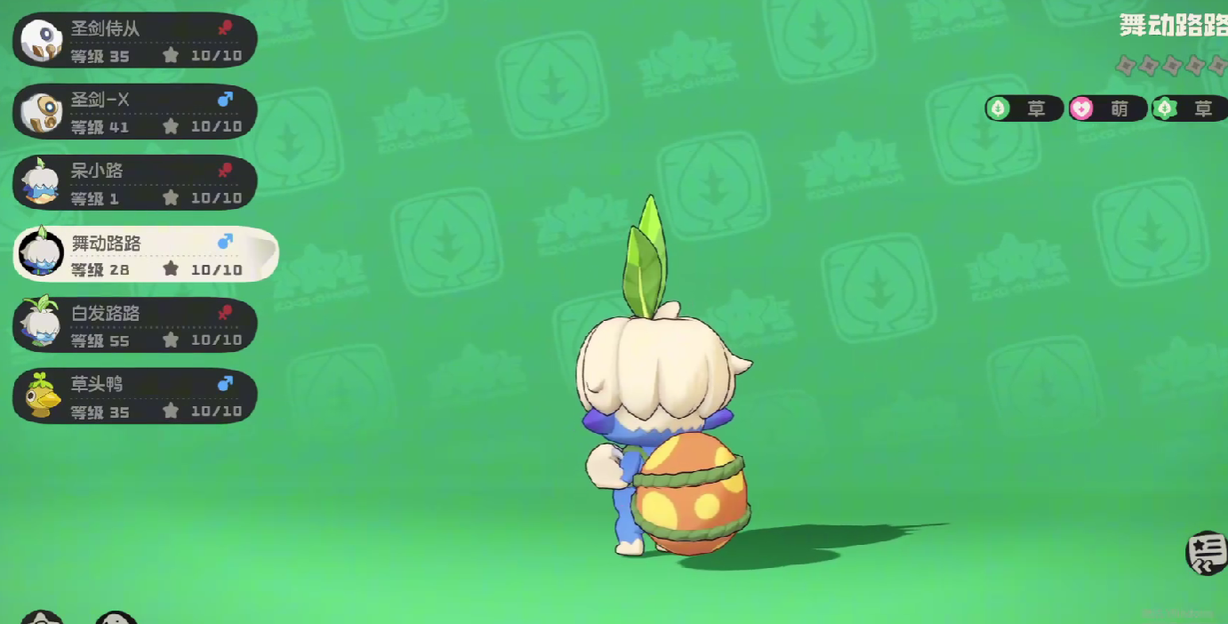 舞动路路是游戏当中的草属性角色,初始状态是呆小路,在进入到32级时,则会直接进化成为舞动路路,而达到四十级时,可以进化成为白发路路。