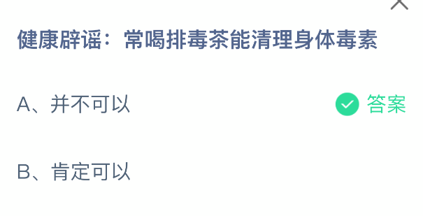 以上就是健康辟谣:常喝排毒茶能清理身体毒素,支付宝蚂蚁庄园2025年11月13日答案最新,更多精彩内容,请点击关注0405手游网更新!