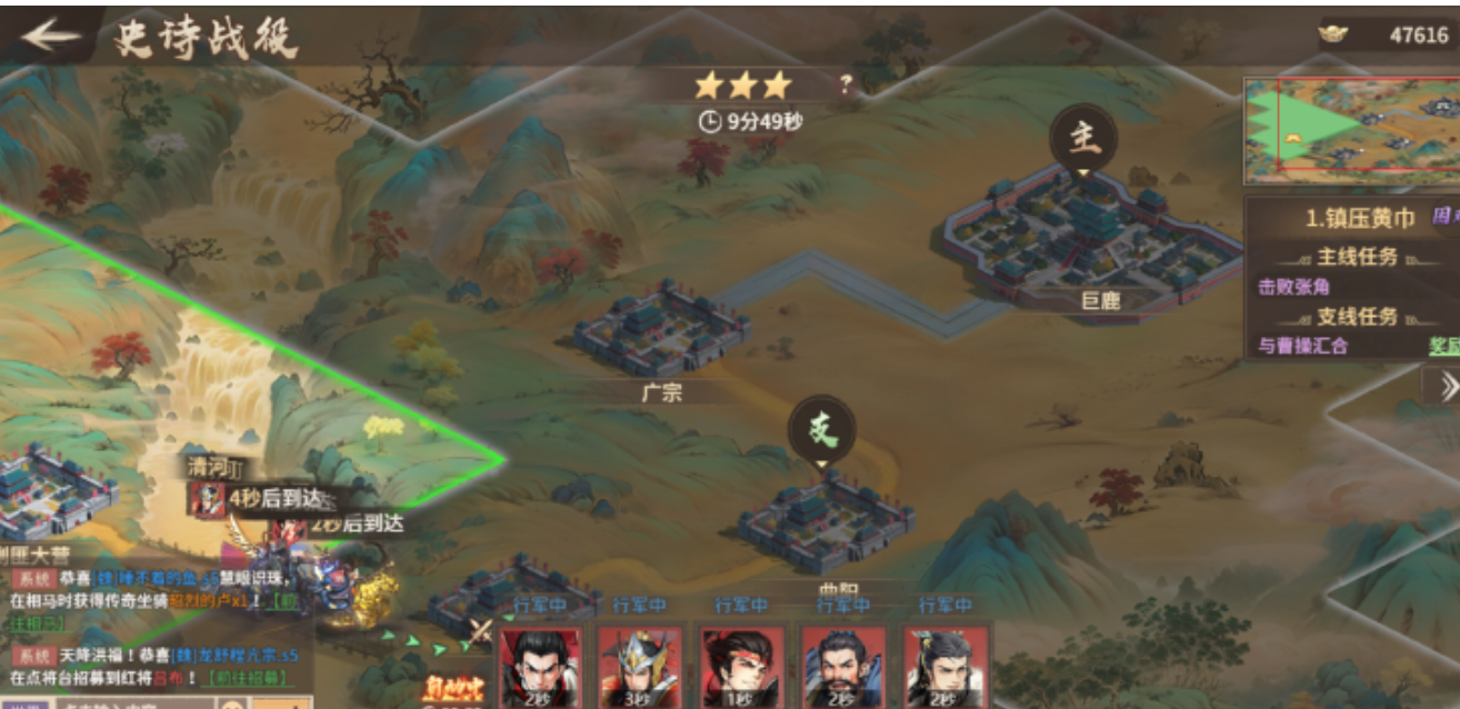 史诗战役前期的重点就是打牢根基,稳固队伍。系统赠送的武将张飞、太史慈、黄忠等都可以承担前期的输出或者控制任务。主力培养方面,要集中资源提高核心武将的等级、装备和技能,保证通关效率。通关时间的压缩要以熟悉地形、敌方兵种为前提,比如先消灭高输出或者控制型武将,再消灭辅助。前期要避免过早冒险,合理运用怒气技以及技能之间的配合,保证每次战斗都能达到任务的目的,拿到基本的奖励和星级,为之后通关高难度关卡打下基础。