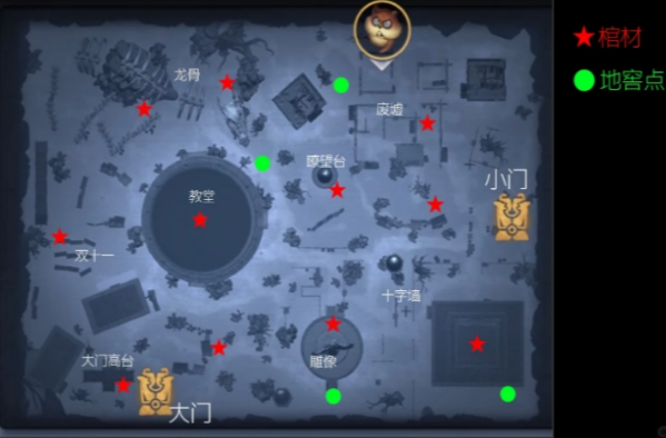 红色五角星为棺材的点位,玩家可以到这些位置清理藤蔓开启棺材