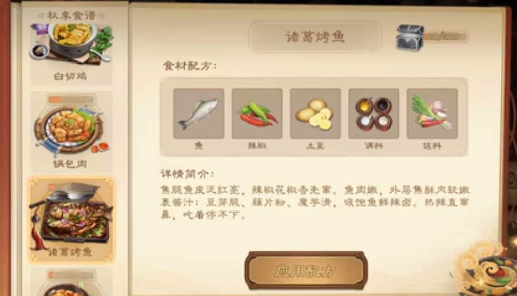 3、推荐大家在优先做完当天的任务,然后再制作诸葛烤鱼。