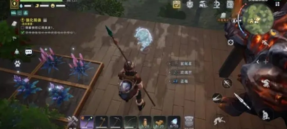 装备制作:先做「刚需三件套」—— 石斧(5 木 + 3 石)、石矛(8 木 + 5 石)、重甲(兽皮 + 金属片),注意重甲超重会禁用翻滚,背包留 1/3 空间。
