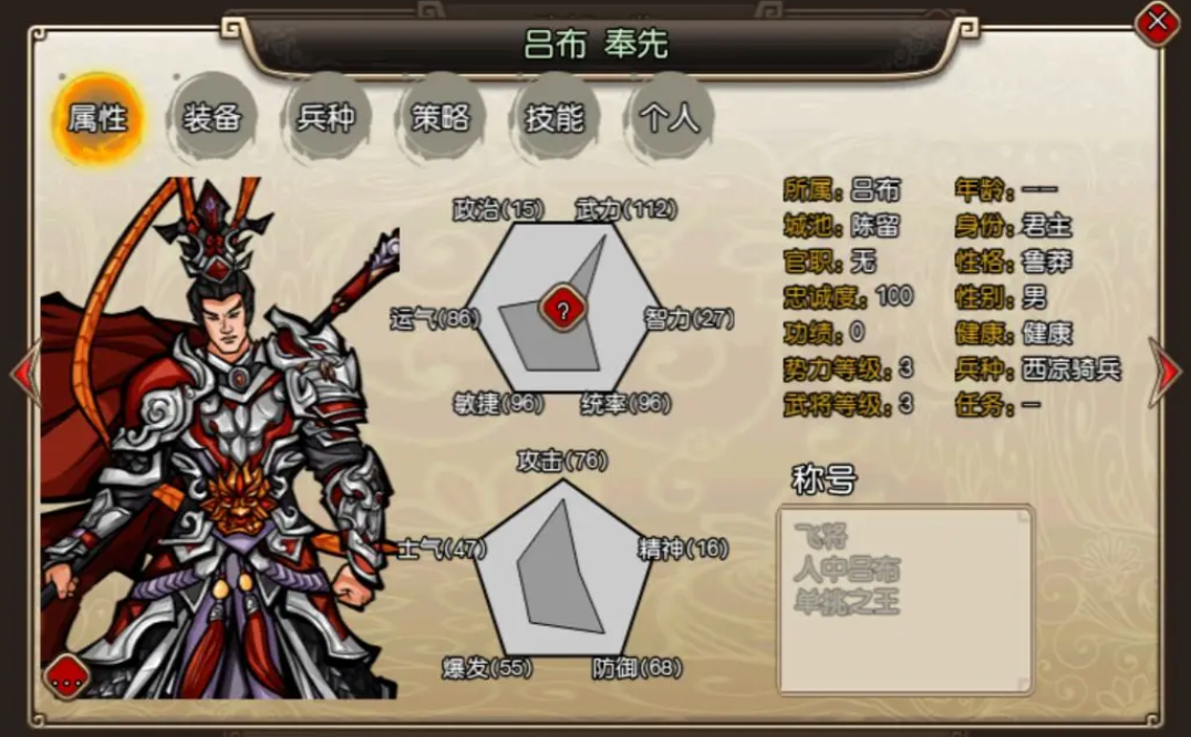 《百战群英》中白门楼之战的剧情演绎,并不是一场简单的攻防战,而是反映了东汉末年动荡不安的社会局势。吕布,人称“人中吕布,马中赤兔”的无双战神,有着过人的武艺和割据一方的雄心壮志,威震天下。而他的野心和多变也为自己招来了覆灭的祸根。曾经先后投靠过丁原、董卓,但是两次背叛主公,导致他在乱世中失去了信任的基础。曹操挥师东征徐州的时候,吕布虽然据守坚城,但是孤立无援,诸侯不再援助,这也成了白门楼之战的导火索。