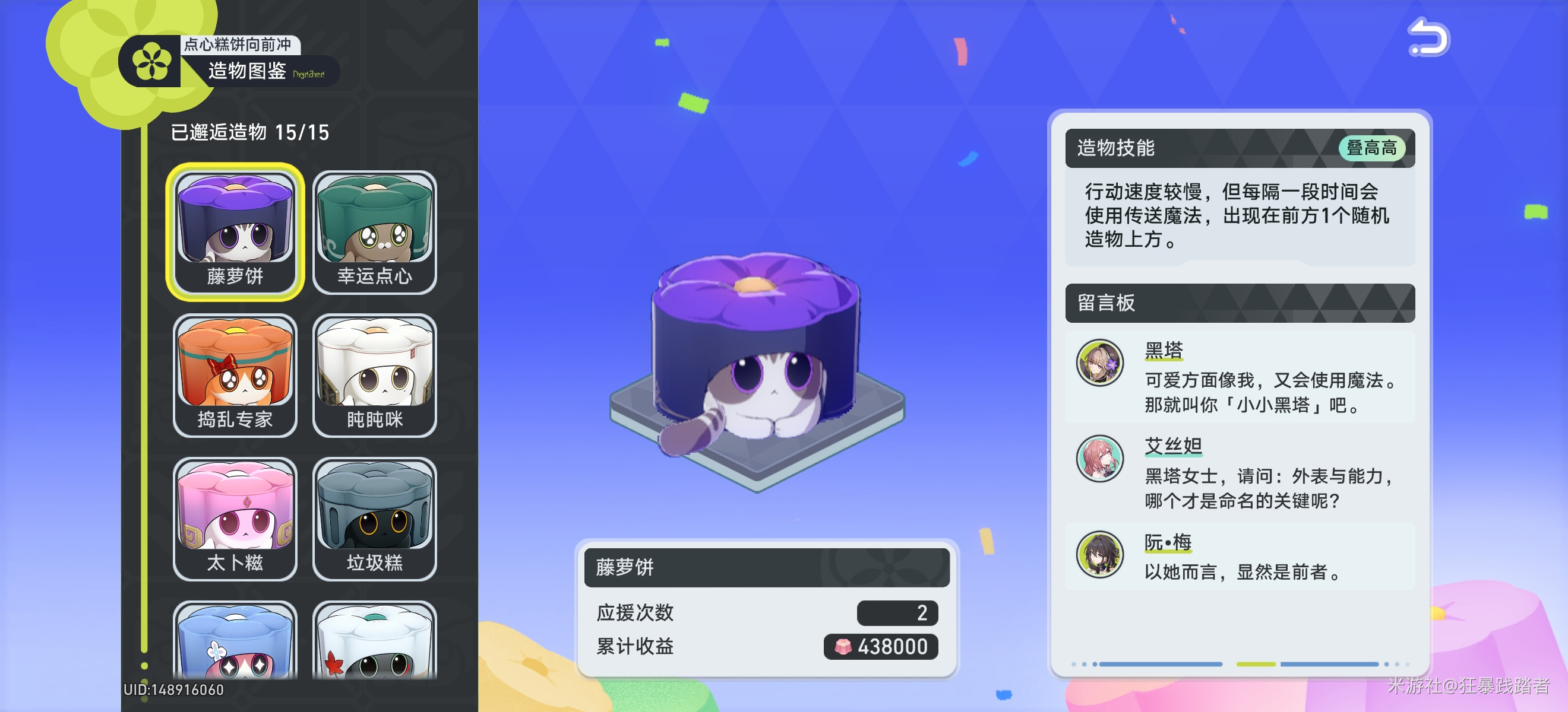 崩坏星穹铁道V3.7联机小游戏糕饼选手一览,大部分朋友都会过完剧情后,投入货币战争的各种轮椅测试中。其实这个版本的联机小游戏《点心糕饼,向前冲》,也非常优秀,拿全奖励快的话大半个小时就搞定了,下面一个一个来点评游戏里的糕饼选手。
