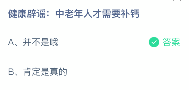 以上就是健康辟谣:中老年人才需要补钙,支付宝蚂蚁庄园2025年11月19日答案最新,更多精彩内容,请点击关注0405手游网更新!