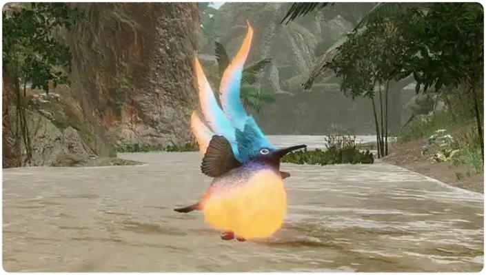 还有一种叫鬼火鸟的小鸟,虽然不像梅朵鹂那样能引导或者战斗支援,但也很重要,它们经常成群结队地在花丛或者树林里飞,身上会散发出淡淡的花粉,猎人只要靠近碰到它们,就能获得临时的强化效果,具体能获得哪种强化,和猎人身上带的花链类型有关,所以很多猎人在开始狩猎前,都会先在地图里找鬼火鸟,先获得强化再去挑战怪物,能少走不少弯路,这些鸟类怪物其实是游戏生态里很重要的一部分,对于猎人来说了解这些鸟类的习性也很关键,探索时跟着梅朵鹂走能更快找到需要的东西,这些鸟类怪物不仅丰富了游戏的生态画面,也让狩猎和探索的过程变得更有策略性。