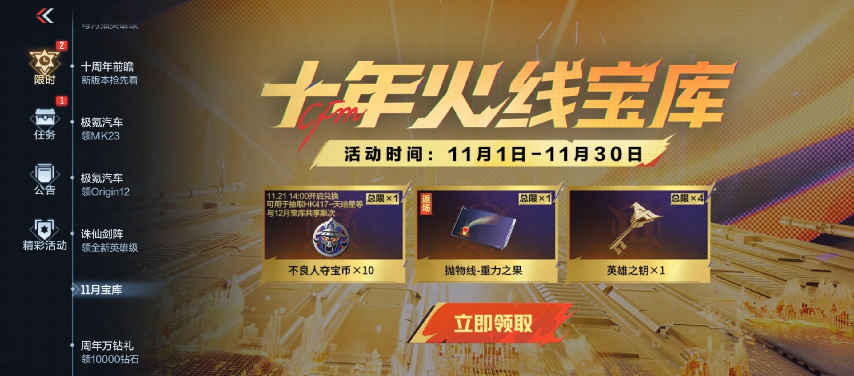 要说不良人联动活动,是不良人动漫直接跟cf手游联动,而形成的一个新的活动。它其实是在11月份就已经开始推进,玩家如果参加了这个活动的话,往往会获得丰厚的奖励,另外对于玩家来说,在夺宝的时候,只需要注意游戏的规则,通常情况下,玩家只需要参加活动,就能够获得专属的武器跟道具。