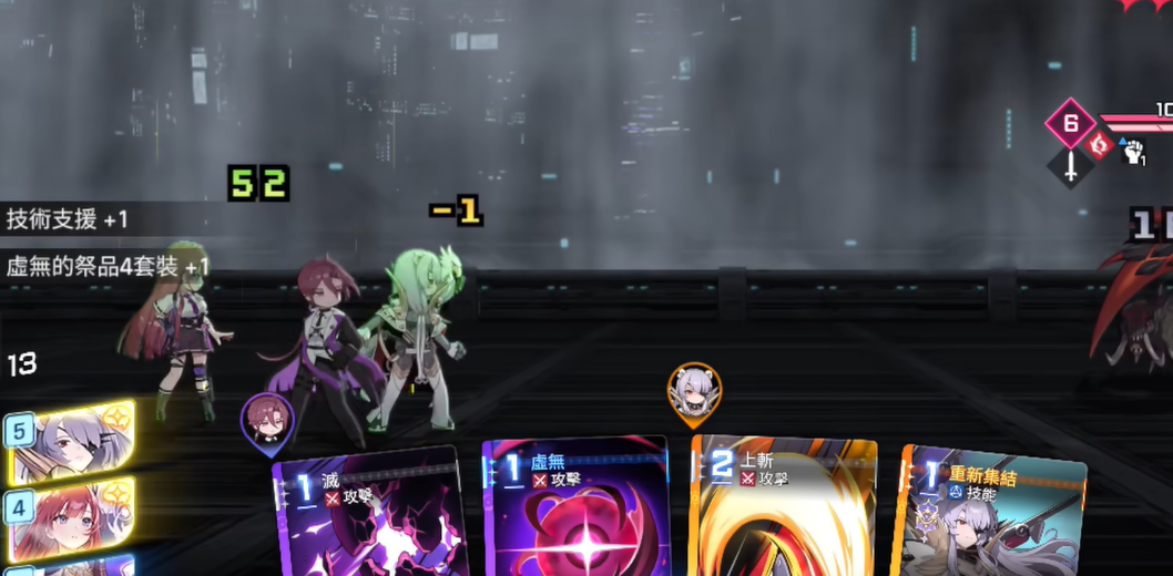 实际的战斗中释放的虚无黑洞技能对敌人造成的范围伤害是大家远想不到的,如果能够叠加虚无悖论使用,将会实现更高的增益效果,将攻击强化至30%。与团队成员共同作战,将会为队友们带来极强的生存能力,使队伍一直向前进攻敌人的领域。核心技能为虚无残影、消灭烙印,虚无残影在使用时需要消耗1AP便可造成240%的伤害,消灭烙印造成全体性伤害60%的同时,每一个回合都将会消灭一张卡牌,减少更多的能量消耗。战场控制能力是极强的,实现高伤害的同时确保了队伍的稳定输出和各方面的能力释放,是非常值得大家去体验的角色之一。