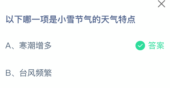 以上就是以下哪一项是小雪节气的天气特点,支付宝蚂蚁庄园2025年11月22日答案最新,更多精彩内容,请点击关注0405手游网更新!