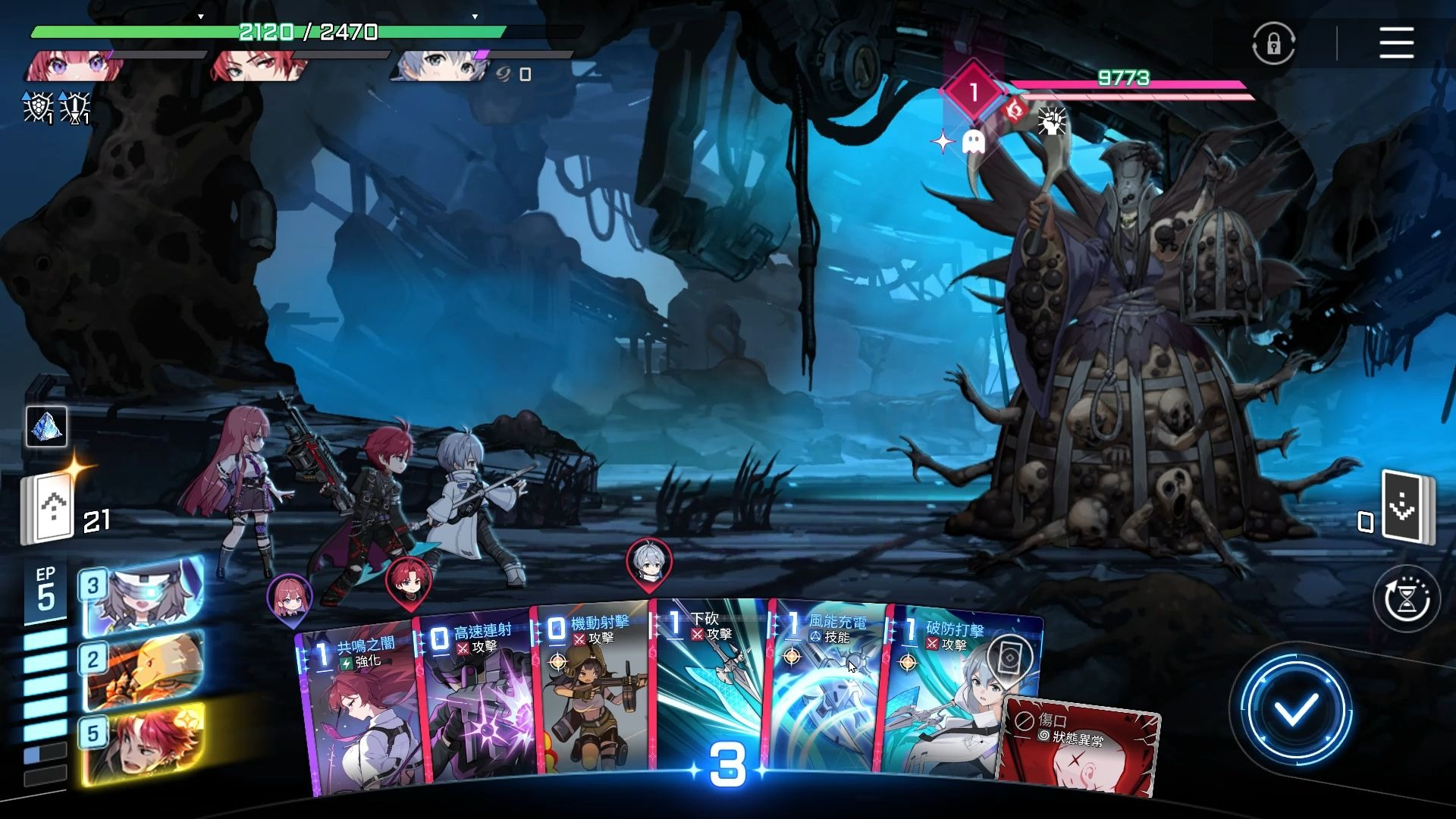 当队伍中有两名角色完成属性强化后,即可开启全面进攻。总攻期间应集中使用高倍率单体伤害卡牌,最大化输出效率。在boss残血阶段,其攻击频率会上升,出手间隔缩短,此时前期预留的治疗卡将发挥关键作用。根据实际血量灵活调用治疗手段,及时抬升生命值。同时可配合具备斩杀效果的卡牌,在敌方血量低于阈值时触发额外爆发伤害,最终通过连续输出完成收割。