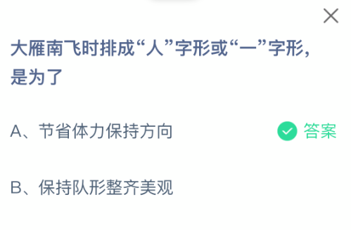以上就是大雁南飞时排成“人”字形或“一”字形,是为了,支付宝蚂蚁庄园2025年11月25日答案最新,更多精彩内容,请点击关注0405手游网更新!