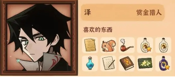 《火山的女儿:再度重逢》中,泽喜爱松鼠及香醇马奶酒等。关键礼物包括《猎物定价规则》(研究笔记)、《白花》(野马湖绘制)、《火山法典》(故事角)及吐真剂(秋火年炼金),均可有效提升其好感。