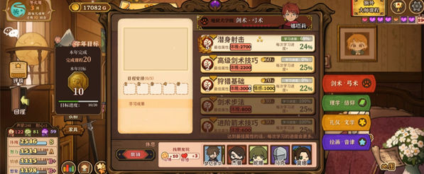 自己本人的学习,优先安排大师课程(有特殊效果)