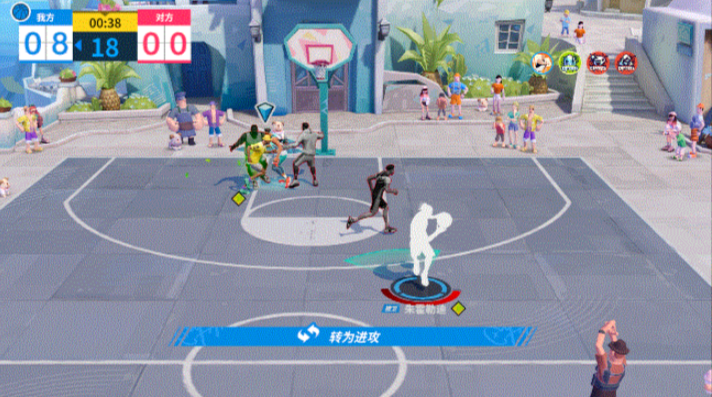 成功触发“两败俱伤”后,2米范围内的敌方单位在1.5秒内将更容易被封盖。但需注意,该技能存在代价:一旦抢断成功,自身在下一个进攻回合中的投篮命中率将会下降,属于用短期火力换取关键球权的战术选择。在进攻端,他的“进攻大旗”技能能根据队友所处区域激活对应增益——中距离区域提升中投命中率,外线区域提高三分命中概率,每次激活还能重置突破技与终结技的冷却至0秒,使其能够连续发动攻势。