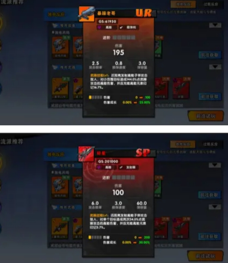 两套配件属性不一样,加电磁伤害的放电磁武器,高能伤害的放高能武器里,以下配件攻略同理。