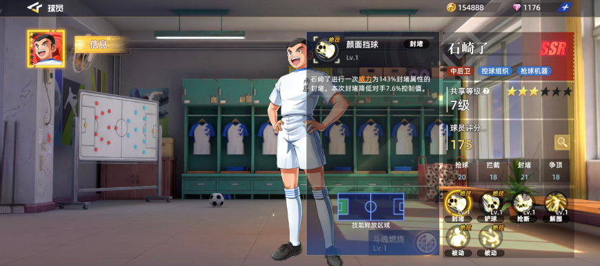 石崎了目前属于SSR球员当中一个适合用作中后卫上面的球员,本身的强度就在于控球组织的效果比较好,而且其中根据抢球的属性来看也是有不错的招式可以用的,他的总体球员评分达到175,而其中比较突出的有抢球20、拦截18、封堵21、争顶18,其中的封堵效果最好,所以把他放在后卫上面用的话,这个属性能够带来的封堵优势也可以为我方作一定的保障,最后对方要进球的话,石崎了在这里也可以利用封堵来将球给拦下来,其次就是他的抢球效果也不错,所以可以跟封堵的动作联合起来,先将对面踢过来的球给拦住,然后利用抢球的效果来夺过球权,这样的优势也是比较符合后卫的一个需求。