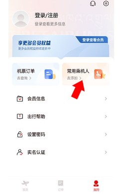 3、之后点击常用乘机人并根据提示输入相应信息即可完成添加