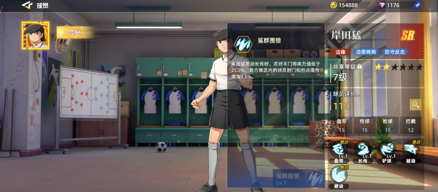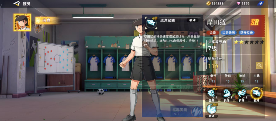 目前游戏当中岸田猛作为SR品质的球员的话,他自身放在边锋位置上面的话,可以带来的整体属性会更好用一些,而且他在球场上的位置基本都是在边缘地区进行跑动,所以在技能效果上面覆盖的范围基本也是球场的两边,另外他在边路的防守效果上面是比较有优势的,还可以根据敌人的踢球方向来进行一些反击,目前虽然根据他的评分数值只有119%来看,他的能力比较一般,但是目前大家可选的边锋球员其实是没有那么多的,所以要在SR品质球员里面找到一个好用的边锋,这里岸田猛大家还是可以进行尝试的。