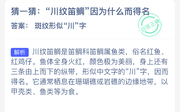 以上就是猜一猜:“川纹笛鲷”因为什么而得名?神奇海洋今天答案最新2025年11月27日分享,更多相关攻略内容,请点击关注0405手游网更新!