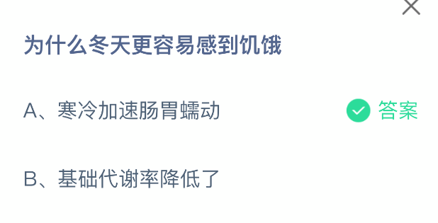 以上就是为什么冬天更容易感到饥饿,支付宝蚂蚁庄园2025年11月28日答案最新,更多精彩内容,请点击关注0405手游网更新!