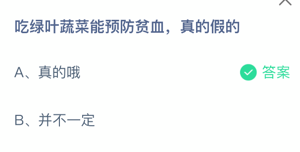 以上就是吃绿叶蔬菜能预防贫血,真的假的,支付宝蚂蚁庄园2025年11月28日答案最新,更多精彩内容,请点击关注0405手游网更新!