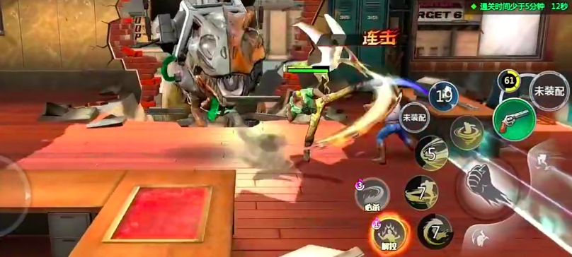 在战局过程当中配合机械剑士杰克,先使用崩山拳打出一条突行之路,为黄帽使用连招做好基础准备,之后开启连控衔接,一套操作可谓是满屏特效,新手玩家也能够直接hold住全场,而且在后期面对机械恐龙的苦战时,杰克也是非常得力的助手干将,不过需要提示杰克新手操作难度会偏高,如果新人玩家无法直接使用出丝滑连招,建议可以将崩山拳与连空飞踢进行分别使用,也能打出非常不错的效果。
