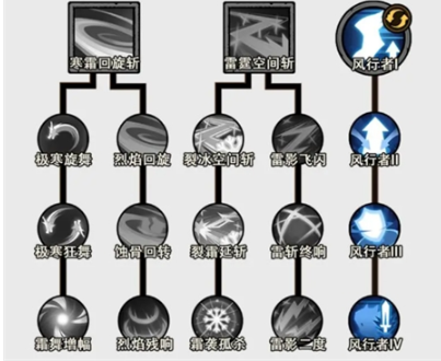 主宰技能前期可以选择裂霜延斩,给敌人施加【易伤】DEBUFF后期流构筑完成即可替换为风行者