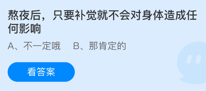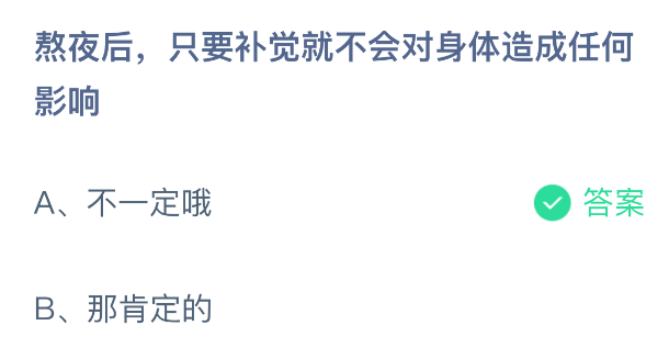 以上就是熬夜后,只要补觉就不会对身体造成任何影响,支付宝蚂蚁庄园2025年12月8日答案最新,更多精彩内容,请点击关注0405手游网更新!