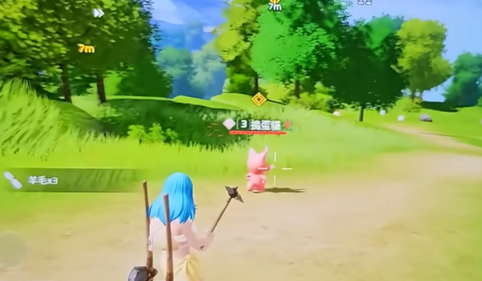 游戏开局后,优先制作基础工具——石斧。该武器是前期探索与战斗的核心装备,制作完成后即可沿主干道向地图东部推进。系统引导会明确提示首个目标位置,步行约两分钟即可在开阔道路旁发现等级为3的捣蛋猫。靠近至有效距离时,屏幕将自动弹出锁定提示框;跳过对话动画后,直接使用普通攻击触发遭遇战。因其为初始野生帕鲁,血量较低,仅需2–3次石斧普攻即可使其进入虚弱状态,随后点击“收服”按钮完成捕捉。