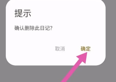 在弹出的提示窗口中,点击确定,即可删除日记。