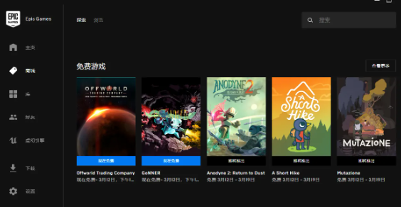 Epic Games Store拥有数千款游戏,涵盖3A大作(如《赛博朋克2077》《荒野大镖客2》)、独立游戏(如《洞窟物语+》《Into the Breach》)和免费游戏(如《堡垒之夜》)。平台支持Windows和macOS,提供云存档、成就系统和跨平台联机功能。Epic Games Store的最大亮点是其每周免费赠送一至两款付费游戏的策略,每周四凌晨1:00(美东时间周四11:00,即北京时间周五凌晨1:00)更新,限时一周领取,永久入库。赠送游戏中不乏《GTA V》《龙腾世纪:审判》《生化奇兵:合集》等3A大作,这一慷慨政策让Epic Games Store迅速积累了超过2亿注册用户,被玩家昵称为“义父”。截至2025年,平台已赠送超500款游戏,总价值数千美元,持续吸引全球玩家。